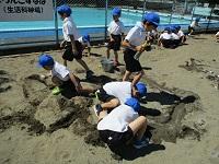 砂場を使って、図工「つちやすなとなかよし」の活動をしました。