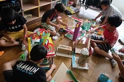 子供たちの表情はとても活き活きしていて、自分の作品だけでなく、友達の作品でも遊びながら、楽しく活動していました。